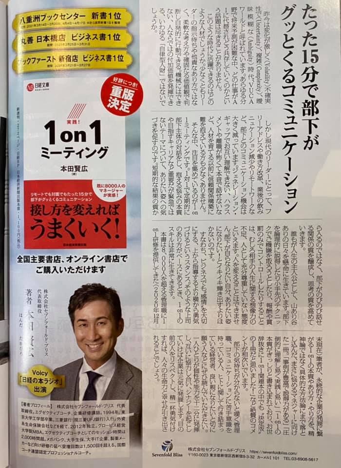 弊社代表 本田の「実践!1on1ミーティング」を記事風にご掲載いただきました。