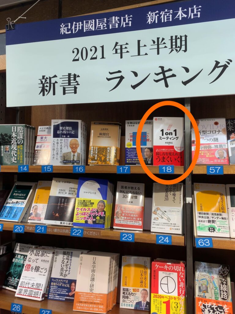 「実践!1on1ミーティング」が紀伊國屋書店 新宿本店の上半期18位にランクインしました。